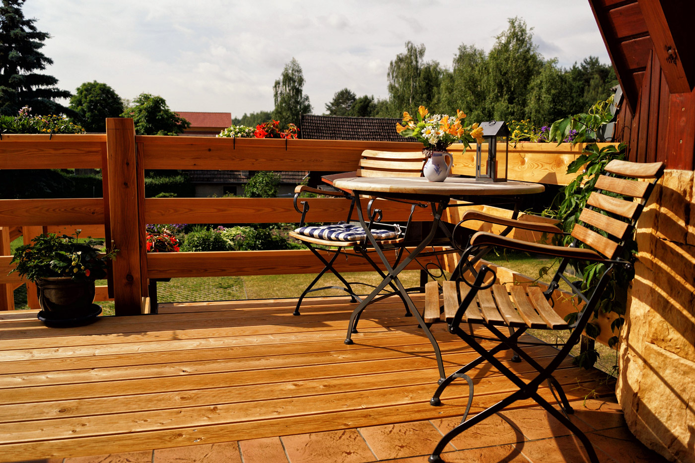 Vor den Wohnungen ist auf dem Laubengang ein Terassenbereich, der zum Frühstücken im Freien und zum genießen fantastischer Sonnenuntergänge einläd.